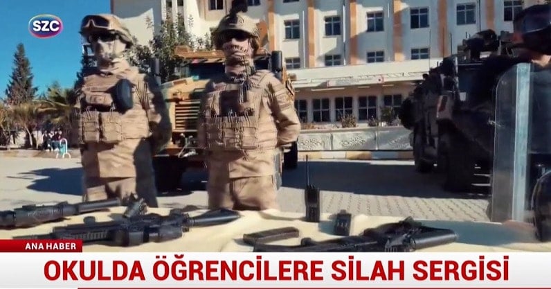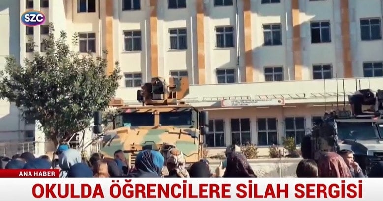 Okul bahçesine zırhlı araçlar getirildi, uzun namlulu silahlar getirildi. Aynı uygulama Siirt’te bir okulda da meydana geldi. Programa katılan Siirt Valisi yerli savunma sanayinin önemine dikkat çeken bir konuşma yaptı.